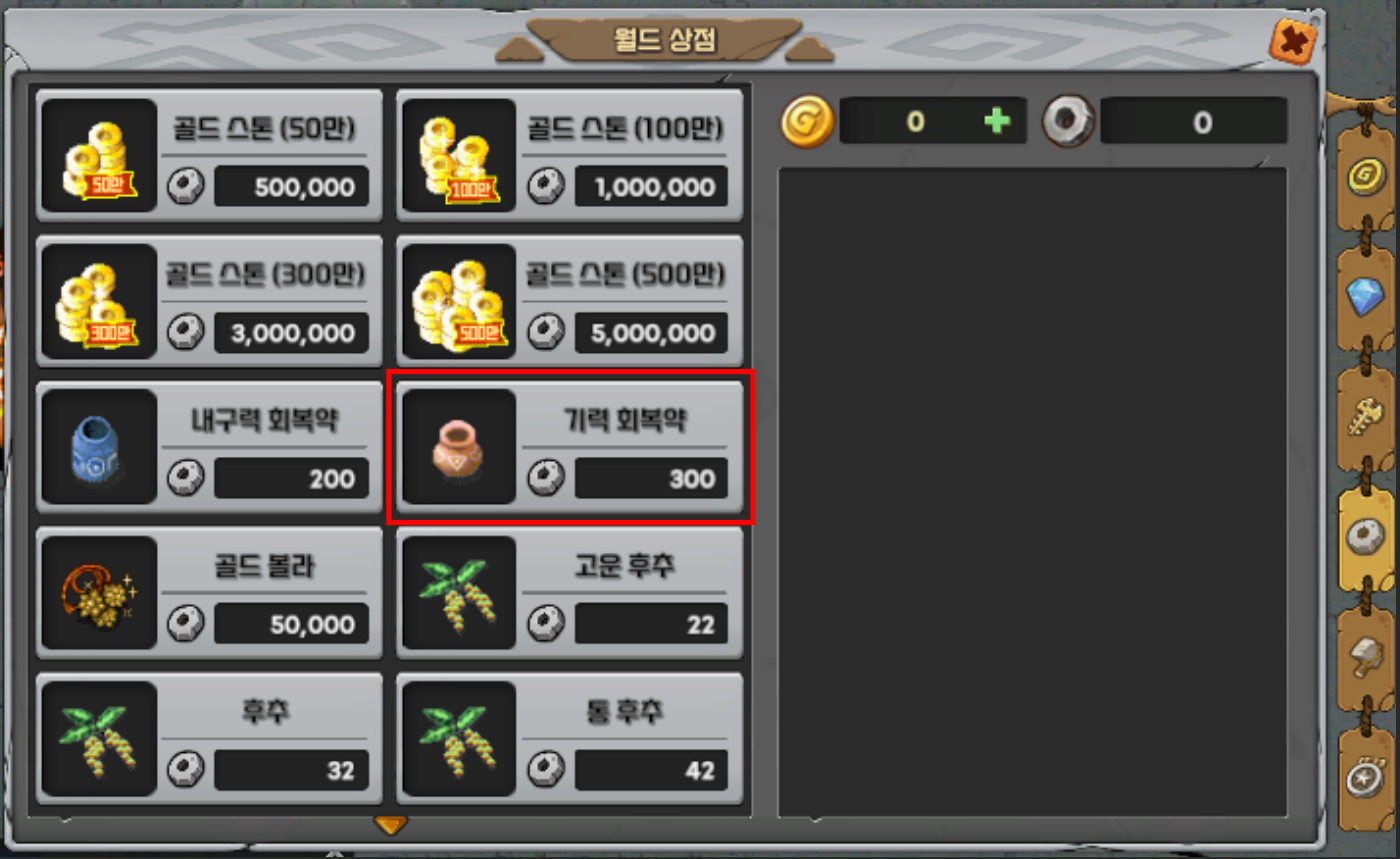 기력 물약 싸게사는방법! 슈퍼쪽지보내기 메일보내기 자기소개 아이디로 검색 전체게시물쪽지보내기 메일보내기 자기소개 아이디로 검색 전체게시물 25-08-11 08:53 2,380 0 12 목록 본문 알고 계실분들도 많으시겠지만...!!급하면 급한대로 월드 상점에서 1개당 300스톤에 기력 회복약을 살수 있습니다.하지만~ 다음의 경로를 따라 끝까지 간다면 아부의 물 1개당 100스톤에 구매하실수 있습니다.다만 자동으로 가는건 없어서 손클해서 가야합니다... 12 댓글목록0 등록된 댓글이 없습니다.