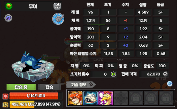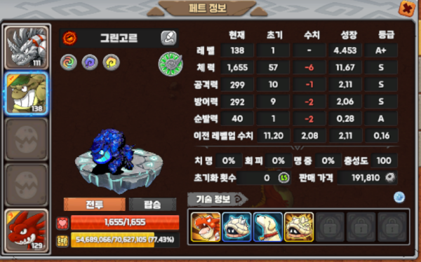 펫은 거의 야생 샤크론이라 갈아야겠지만....