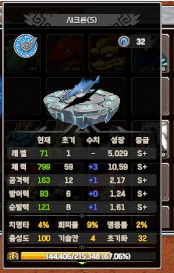 비취석 4개 순발1 > 순발1 > 순발1 > 행운1