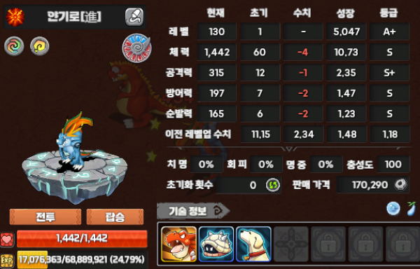 열심히 사냥했는데 130이라니..