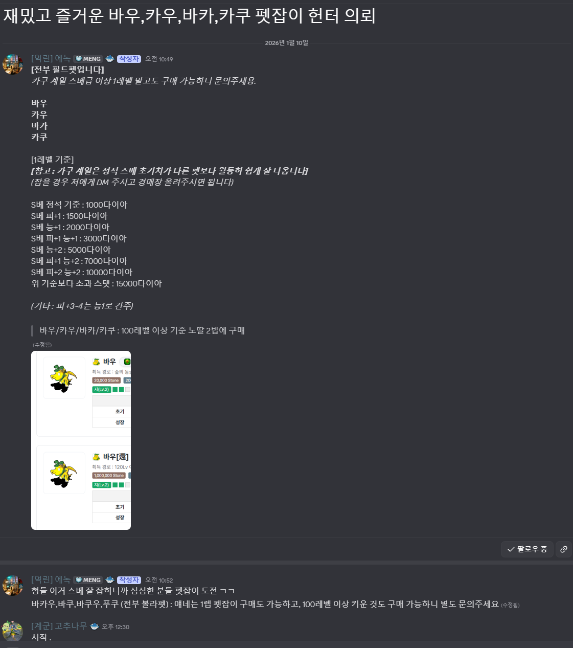 [일반] 재밌고 즐거운 바우,카우,바카,카쿠 펫잡이 헌터 의뢰